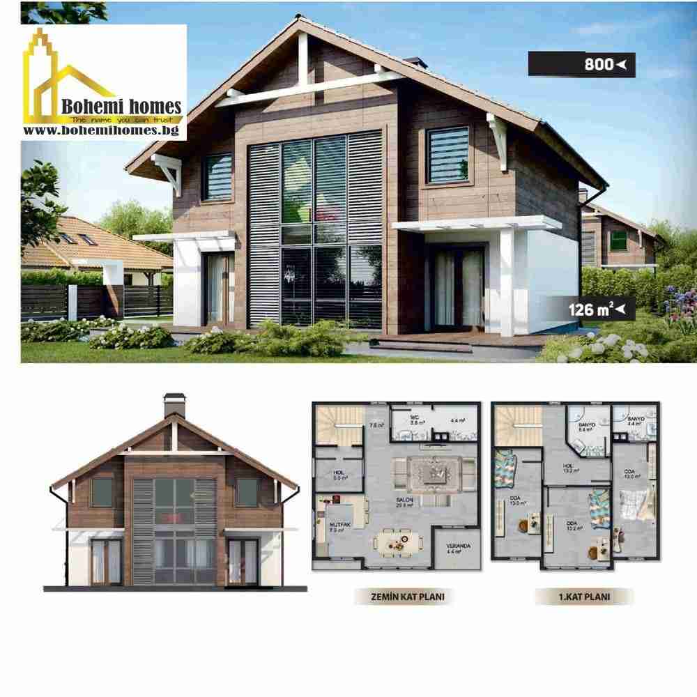 Къща "ПРЕФАБРИК" 100 кв. м., цена с доставка и монтаж, около 70 000 лева (цената е ориентировъчна)
